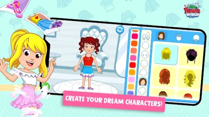 Find a perfect costume for a princess, take friends to a city skate park, roleplay as a firefighter and play city games on the streets! Create World by adding My Town and My City characters and explore an open world for kids.