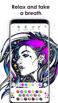 A wide range of drawing and coloring pages, mandalas, arabesque, with great selection of colors and color palettes allows you to draw unique and live colorings. Plunge into the bright world of colors and get relaxed in a few seconds.