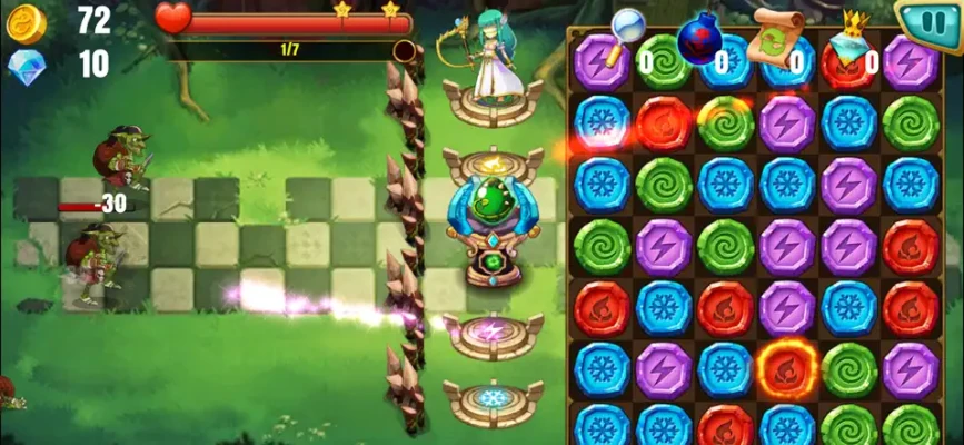 Match-3 Mastery: Engage in exhilarating match-3 battles that transcend the ordinary. Swap, match, and cascade your way through an array of challenging puzzles that will test your skills and intellect. Form powerful combinations and unleash dazzling spells to overcome adversaries and unlock new areas in your quest.