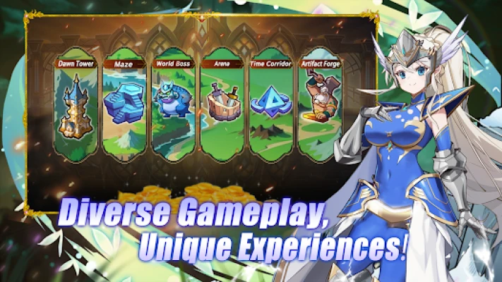 The game offers various dungeons waiting for your exploration. Experience the Roguelike fusion in the "Labyrinth," delve into hero stories in the "Time Corridor," and conquer the heights of the thrilling "Tower Challenge." Rare equipment and treasures await your collection in dungeons of this dynamic game.