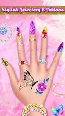 Create your own styles and be an expert DIY manicure beauty artist! Here you can really feel like a hollywood celebrity and have the best designs available with plenty of sparkles paint art. Paint each nail of princess with desire color you want, accessorize your toenails, hand, and wrist with beautiful jewelry, and so much more. In this Nail Art Acrylic: Salon Games offer you dozens of shades of nail polish, glamorous rings, cute girly stickers, luxury bracelets, and fun henna tattoos to help you to learn as a beauty artist of nail polish games for girls.