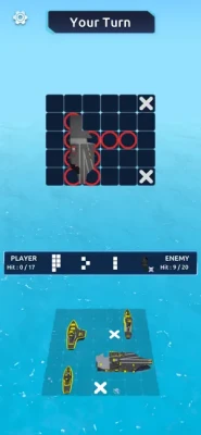 Naval battle is a turn-based game, whose goal is to destroy the opponent's fleet. Each level has a random grid size where you can place your ships. Each player takes turns to fire at each other. Hits are shown as O’s while miss shown as X’s. The side who destroys all opponents' fleets will win the game.