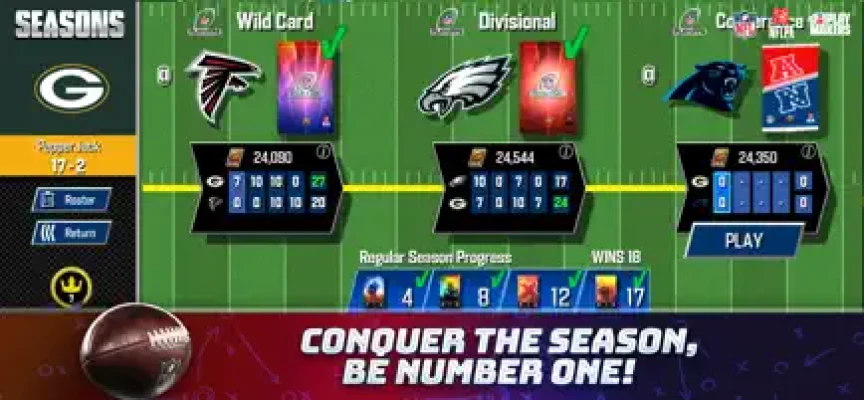 Build your squad of champs, design your strategy as a coach by collecting player cards, become a draft wizard, battle against rivals, and reach the summit of the leaderboards to secure valuable in-game rewards. Battle for glory and become an NFL MVP!