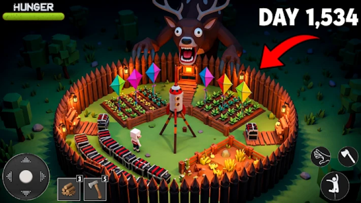 Use torches, lanterns, and campfires to survive the long, endless nights. But beware — your light won’t last forever.