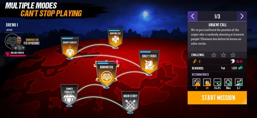 Rich gameplay and modes, such as main story, hunting list, daily tasks, dominator, armed conflicts, bounty hunter and so on. You won't stop playing.