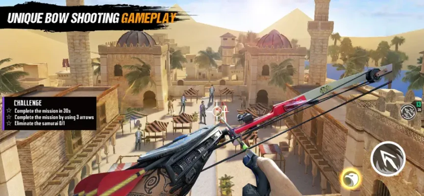 Development team perfectly combined a variety of elements such as ninja assassin, action shooting, and born this unique action shooting assassination game which named Ninja's Creed. It is easy to play, using the new arrow deceleration special effect technology, which gives you different shooting experience every time you shoot. Ninja's Creed is definitely the first-person bow and arrow shooting game that you have been expected. As a ninja shooter, you not only need shooting skills, but also get powerful weapons to improve your strength. We choose different weapon this time except for gun, you will get a special game experience. Selecting the right weapon in different tasks will help you complete the task faster! Aim your target, be the area king!
