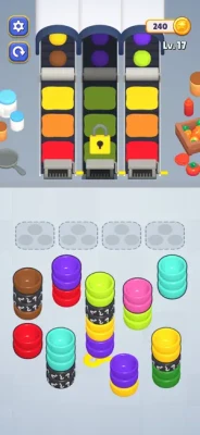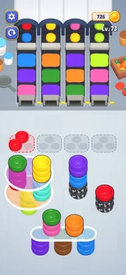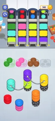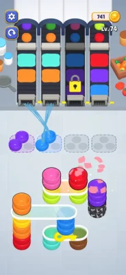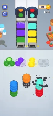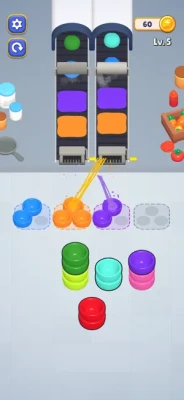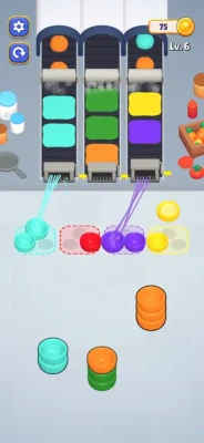 Thin sheets of dough line up above. Below, a stack of colorful bowls is waiting. Your job? Tap the right bowl at the right time, send it up, and match it with the dough above. When the colors align, the noodles start flowing!