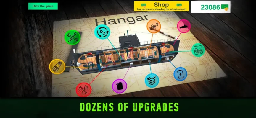 Every level has 3 Stars hidden somewhere in the sea, find them all and get your reward just keep your marine crew survival in mind. Upgrade your submersible warship! There are 10 types of submarine upgrades in the game, every type has 6 options - choose your strategy wisely! Nuclear or diesel? Which engine you’ll pick for your battleship next time? Navigate deadly obstructions! Be careful, Captain! This war zone is full of mines and enemy battleship s, battle planes are trying to locate you and destroy! Survival of your marine crew and mission success is your top priority! Have fun playing our new simulator and please make sure to share it with your friends and to send us your feedback. Your opinion is our best source to know, how to improve and develop our game. The war has come, Captain! Good luck!