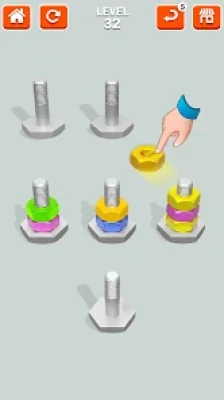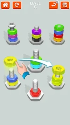 The heart of the gameplay lies in sorting nuts & bolts. Tap and drag to put the nuts into the correct bolts. Utilize strategic thinking and problem-solving skills to sort nuts & bolts faster and more accurately. Each level offers new challenges and opportunities to improve your nuts & bolts sorting abilities in this captivating nuts sort screw puzzle game.