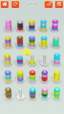 Hundreds of Levels: Each level presents a unique sorting challenge with increasing complexity. How fast can you sort the nuts and bolts in this screw puzzle game?