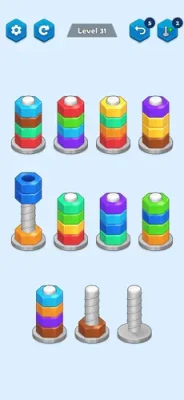 Immerse yourself in a soothing experience with ASMR elements that enhance the tactile feel of the game. Enjoy the satisfying clicks, clinks, and whirs as you manipulate the virtual hardware, creating a tranquil background for your mechanical adventures. With easy-to-use controls, eye-catching visuals, and puzzles that gradually get trickier, "Nuts Sort - Color Sort" guarantees hours of enjoyable entertainment. Ideal for both casual players and dedicated puzzle enthusiasts, can you rise to the occasion and become the ultimate maestro of nuts and bolts?