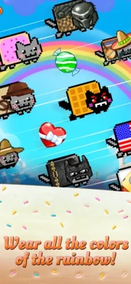 Enjoy the crazy colorful candy adventures of Nyan cat, featuring: