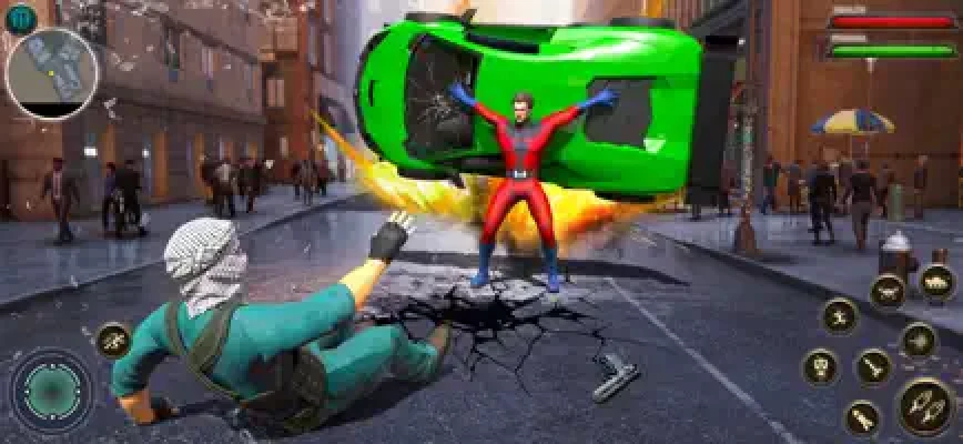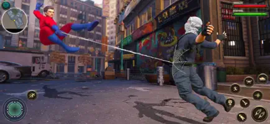 This game describes the main character as Spiderman and superhero ninja role play, with gangsters fighting in the city to minimize crime in an open world GTA city
