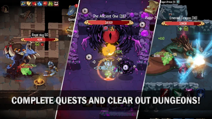 Weapons, armor, potions, magic scrolls, and many other items are hidden among the shadows, guarded by monsters, and stored in chests. Collect them all and use them to play your best dungeon RPG games!