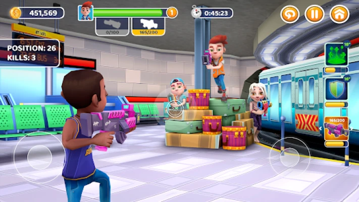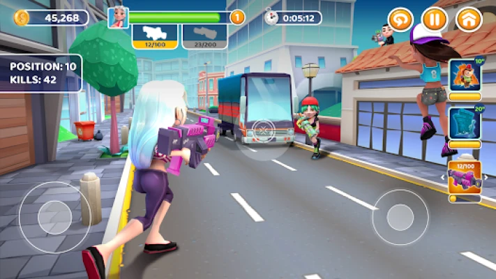 The Bus Rush Paintball store has lots of items to improve your weapons and power ups. Also you’ll find different customization items to fit your new playing look as you like. Get a weapon or power up cards to improve their power.