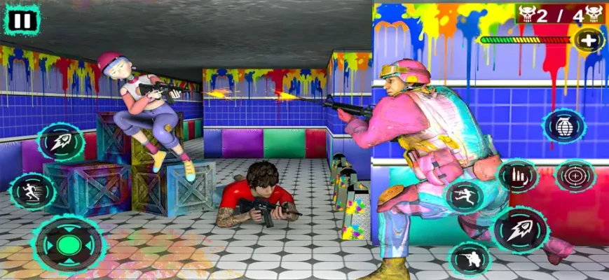 pick your loadout, and dive into dynamic multiplayer arenas where every shot counts. Step into the combat zone where your mission is simple: dodge, shoot, and dominate the arena with your paint-splattering skills! With realistic paintball ballistics, smooth controls, and colorful splash effects, this game delivers a unique mix of shooter action and fun-filled competition. Whether you're a solo sharpshooter or a team player, there's a place for you on the battlefield. Features: • High-Intensity Multiplayer Paintball Matches • Customizable Paintball Guns, Outfits, and Loadouts • Diverse Maps with Strategic Cover Points and Obstacles • Exciting Game Modes like Team Match, Capture the Flag, Sniper, and more • Colorful Effects, Smooth Animations, and Realistic Mechanics • Daily Challenges, Missions, and Reward Unlocks • Progression System with Levels, Ranks, and Achievements Are you ready to splash your way to the top? Lock, load, and paint the battlefield in this epic shooting experience.