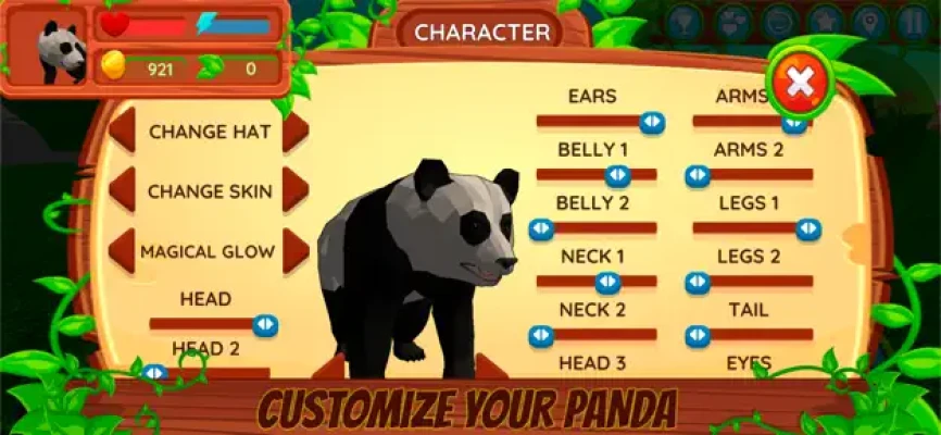 Customize the appearance of the panda as you like. There are many skins to choose from. You can customize skins for your spouse and children. You can add various beautiful magic signs or even put on a funny hat. For a more accurate adjustment of the panda appearance, you can change its head, ears, abdomen, neck, front and back paws, tail, eyes.