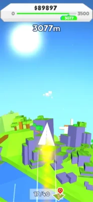Launch your magic paper plane as far as possible and upgrade your stats! Improve your best distance and discover all the points of interest spread around the map!