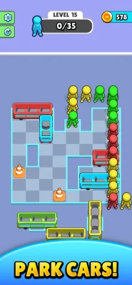 Place cars on the board and collect all colorful people! Can you get to level 100?