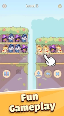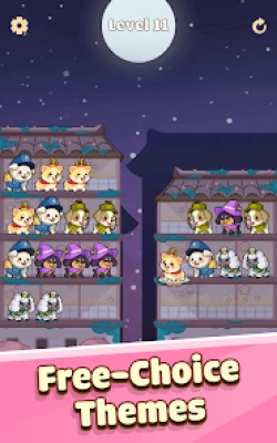 Pet Sort Puzzle is an fascinating combination of puzzle and sorting game. Try to gather a pack of the same dogs on each shelf until all of them are picked up by the UFC (Unidentified flying cat). Customize your own world with themes, weathers and puppy types.