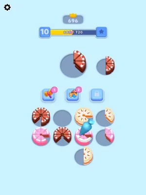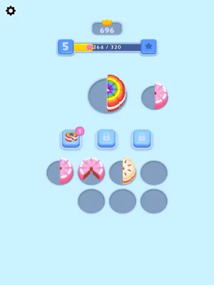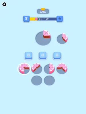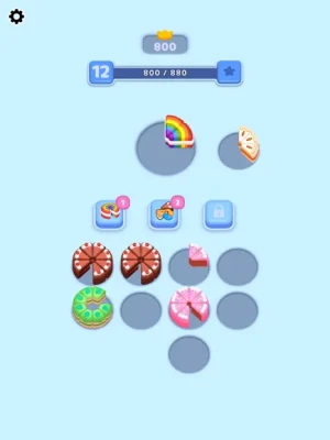 Place the incoming cake slices in the empty slots and complete the cakes. You must complete as many cakes as you can and reach the highest score. You can use power-ups to keep your high score.