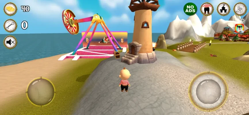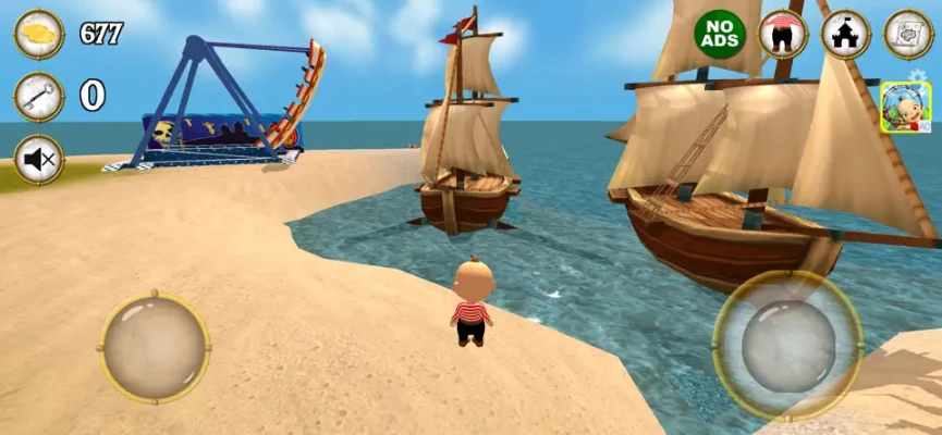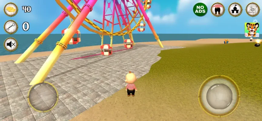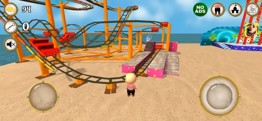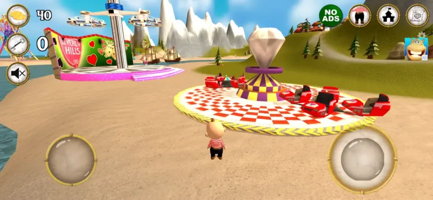 Walk Babsy around the island in order to reach the different attractions. Take a ride on the bumper cars and try to hit as many opponents and as often as possible to win the competition.
