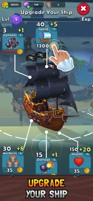 • Splice the mainbrace! Head back to harbor to trade your barrels of booty for coin at the local pirates’ market, then celebrate your victory and enhance your fearsome reputation by upgrading five different parameters of your pirateship or improving your lighthouse to open up new expanses of the high seas to your reign of piratical terror.