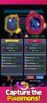 - Endlessly upgrade your Pixelmons, equipping them with a variety of gear and skills to make them even more powerful.
