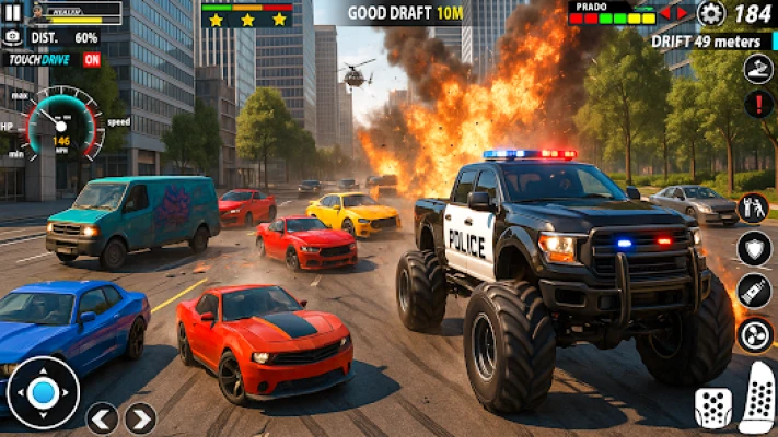 Experience high-speed car chases, off-road monster truck driving, and action-packed showdowns with dangerous gangsters. From narrow alleys to open highways, every turn brings a new crime chase challenge in this thrilling 3D driving game.