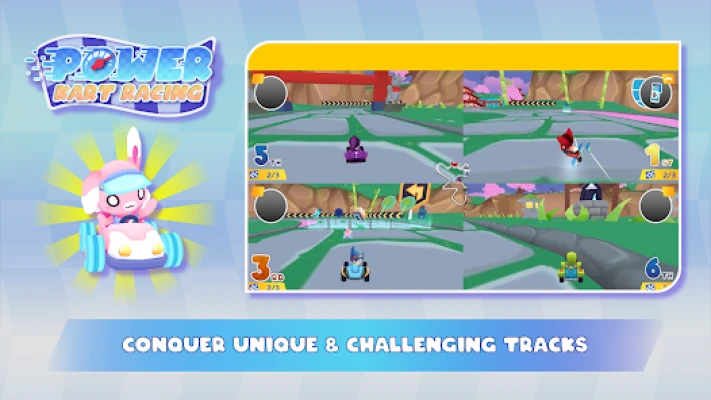 Feel the excitement of racing in Power Kart Racing with your friends on Ayo Main! Choose 1 from 8 characters, each with a unique vehicle featuring different speed, control, and special abilities. Play and be the best on the track! Ready to be the champion? Play it now!