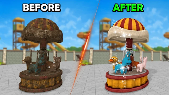 Your adventure grows with every level. Bigger slides to wash, larger swimming pool areas to manage, and more dirt challenges will test your skills. With the vibe of a power wash simulator, the depth of a manager simulator, and the creativity of a mechanic simulator, this is the ultimate mix. Experience the thrill of an aqua park game while proving you’re the master of park cleaning.
