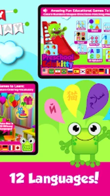 • An adorable kitty and two animated 3D characters guide children in their learning process!