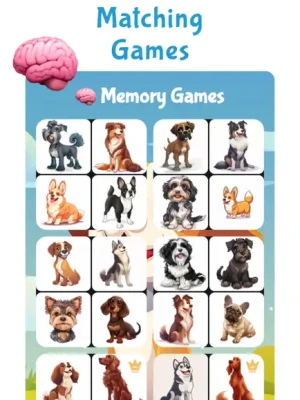 The activity app also comes with a dog breeds and care matching game , and many beautiful, real dog puzzle games.