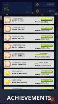 You are given a random tile to place every turn. They can be placed on an empty tile. When 3 of the same object touches, they upgrade. When 4 or more of the same object touches, they upgrade with bonus effects and points.
