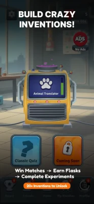 • Invite a friend or get auto-matched with a new opponent. • Answer questions as fast and accurately as you can, the quicker mind wins the round! • Earn experiment flasks with every victory and use them to build wild inventions: teleporting toasters, animal translators, time-bending coffee machines, and more! Features Play with friends: Challenge anyone to a trivia duel in seconds. Fast-paced fun: Short, intense rounds keep the energy high. Global matchmaking: Compete against players around the world. 750+ categories: Endless variety keeps every match fresh. Collect & create: Win flasks and complete crazy lab experiments. Whether you’re hanging out with friends or looking for a quick brain-boost, Quiz Battle: Think Fast is the perfect blend of competition, creativity, and fun. So... Ready to test your brainpower and challenge your crew? Download Quiz Battle: Think Fast now and let the trivia battles begin!