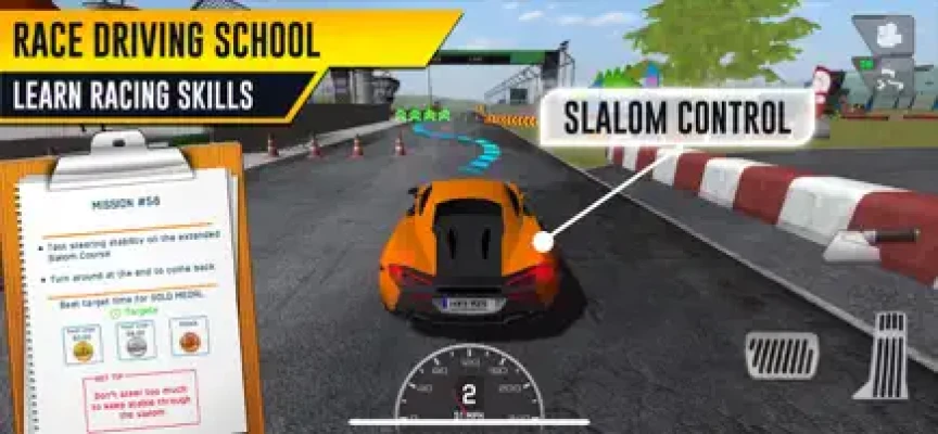 Start your journey to becoming a true driving pro! Your personal tutor will meet you on the race track. Follow his advice, and start your career in a race team!