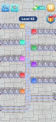 Start each level with several train cars of different colors and types on separate rails. Your goal is to strategically move and align four identical train cars onto one rail. Connecting two or more identical train cars allows you to select them all for easier manipulation. Once four train cars of the same type are on one rail, a train head arrives to pull them away, completing the sorting process.