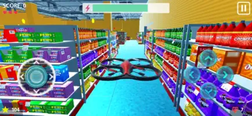 Fly remote controlled drones and collect stars at three different places: Office, Supermarket and Warehouse.
