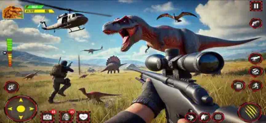 Welcome to the world's dino hunting games, set in diverse and captivating environments with unique gameplay modes. In the Dino Shooting & Hunting Games you'll confront aggressive dino species, face off against them, and test your dino shooting skills.