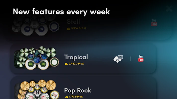 - New drum sets, drum lessons, and loops introduced weekly