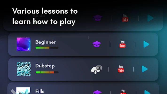 - Over 100 drum lessons to learn drumming