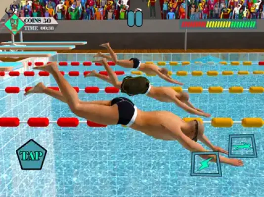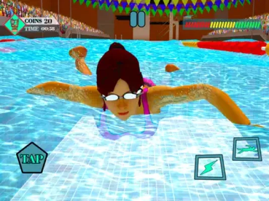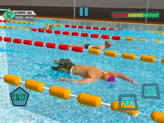 Welcome to water race swimming tournament! Are you going to win? Practice flip swimming in a realistic 3D environment! Do your best in different athletics events and have fun with pool swimming as a swimmer or like a fastest swimmer !