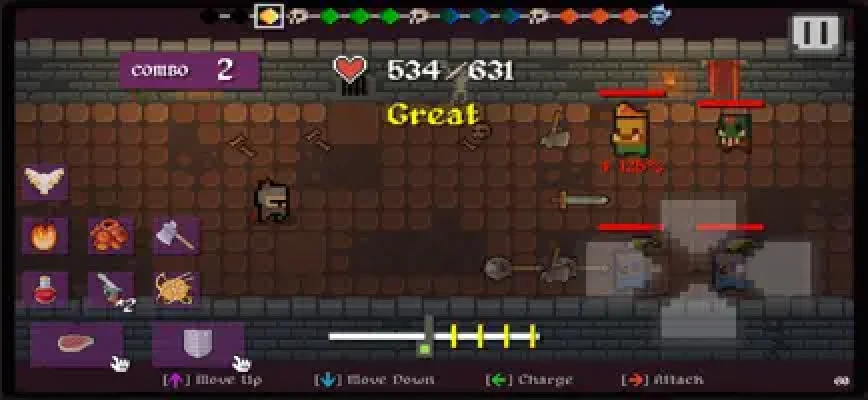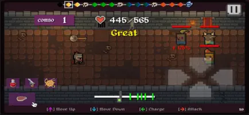 Progress through in a dungeon crawler experience and unlock new weapons and spells. Roguelite gameplay and slay the monsters and defeat bosses. Use music and rhythm to time your moves and attacks in this turn based RPG.