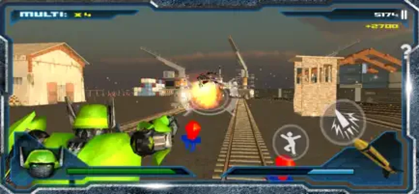 "Robot Shoot 3D" is an over-the-shoulder third-person shooter game. The background of the game takes place in the future of the robot era. The army of evil robots is intending to destroy a city. An Green robot that on behalf of humanity get this message and try to fight againt with them. Though very tough wars, finally the green robot win. In this game, you are the green robot, you need to fight against with the evil robots to protect the city. But do not worry, the victory always belong with you. So go and give it a try!