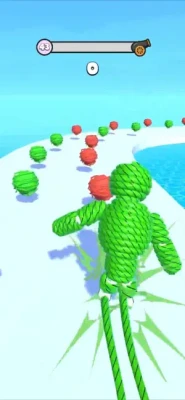 Control the character that's made out of ropes and collect colorful yarns to grow and progress through the level without hitting obstacles as you will lose rope if so.