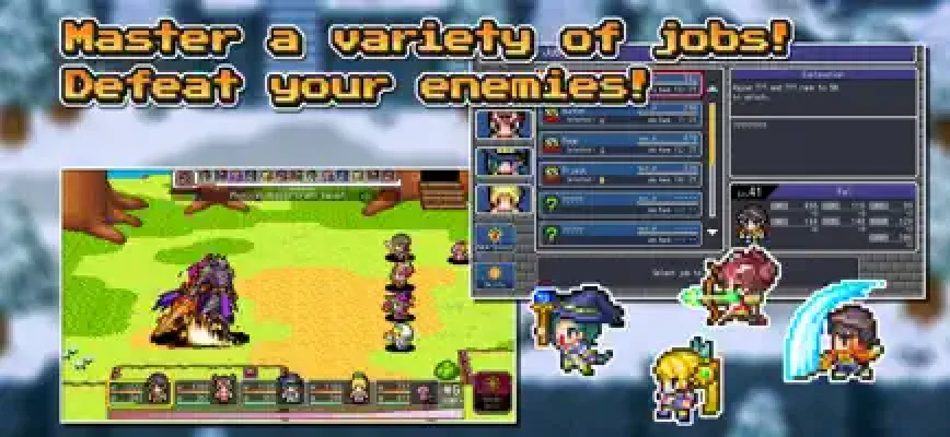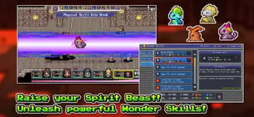 Experience a nostalgic pixel-art RPG packed with classic turn-based battles, a board game-style growth system, and a wide range of customizable jobs. Collect items, unlock powerful Wonder Skills, and raise a Spirit Beast companion that evolves with the story. Spin the roulette, grow stronger, and uncover the truth behind the sealed legends!