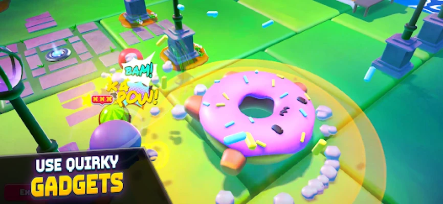 Fly in on Captain Punch’s Sky Yacht, get bopped into the arena, find silly gadgets to battle with, and survive the dropping floor and shrinking battlefield to be the last player standing! Are you ready to punch your way to victory and reach a win as an ultimate champion?