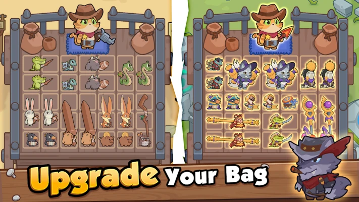 🐾 Merge & Manage Your Backpack: Enjoy the excitement of combining adorable animals into powerful heroes! Master the art of backpack organization and resource management, and watch your perfect strategy unfold in battle.