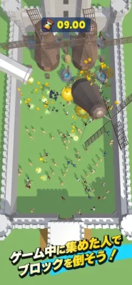 ・In the block breaking part, you decide the direction in which you want to send your characters flying and release them onto the field at once!