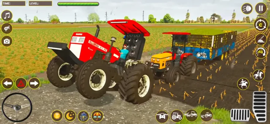 Step into a vibrant farming adventure where every choice shapes your journey. Begin at the live main menu and enter the tractor selection hub, moving into the garage to pick your machine of choice. Personalize each tractor with detailed customization options before deciding between two distinct play styles: story-driven missions or free exploration. In story mode, progress through a sequence of challenging levels-each mission designed to test skill and unlock the path forward. In open world mode, take full control of your character, walk across fields and villages, and freely hop into tractors to drive across a living environment. Trigger points scattered around the land allow you to enter missions at your own pace. Once you attach a tractor,